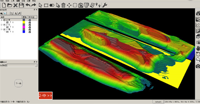 - 点云显示,立体模型灰度显示,立体模型彩色高程显示;