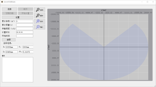 主界面主要实现雷达的连接,采集操作,流量显示,坐标显示,雷达实时图像和计算结果显示,如图3 所示: